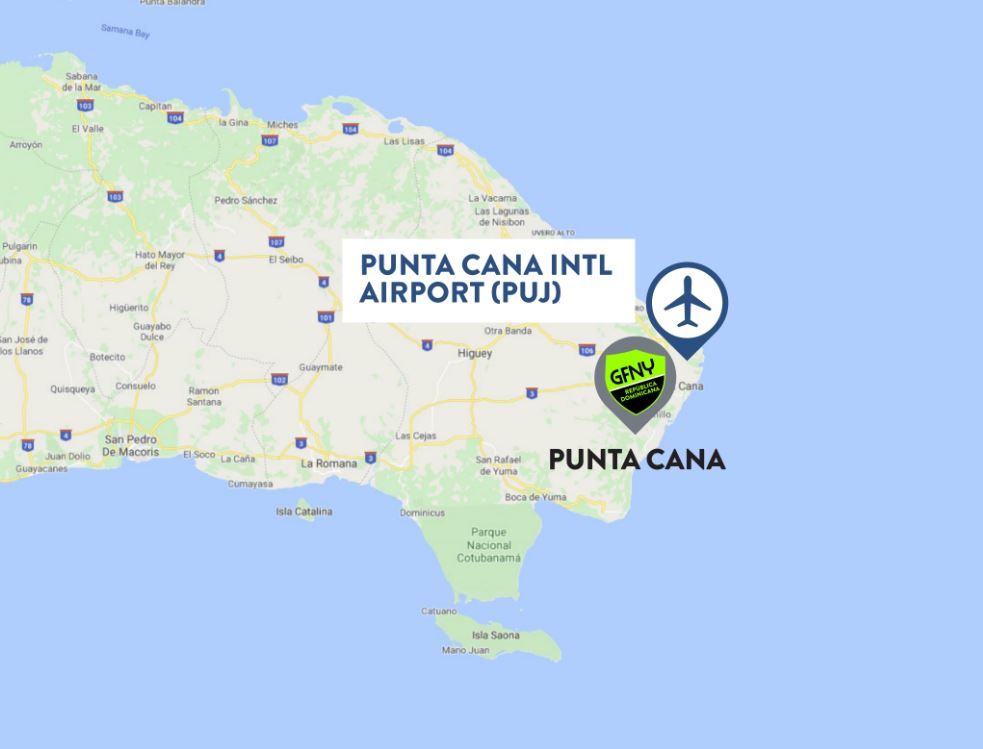 The Punta Cana International Airport (PUJ) is only 15 minutes from the Punta Cana area, and about 30 minutes from the Bavaro, El Cortecito, Arena Gorda, Macao and Uvero Alto areas. This is the Caribbean airport with the greatest diversity of flights in the world.